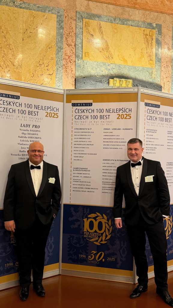 Cenu za našu spoločnosť prevzal majiteľ spoločnosti Galileo Corporation, pán Dušan Procházka. Záznam z odovzdávania ceny si môžete pozrieť tu – Ocenenie Českých 100 Najlepších | Galileo Corporation Strojárenstvo & IT